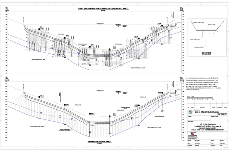Her türlü inşaat, baraj, gölet, regülatör, HES, sulama projesi vb. gibi yapı yerlerinin her aşamasında yerinde arazi incelenme çalışmalarının yapılması ve kontrolü ile arazi (in-situ) ve laboratuvar deneylerinin takibi, jeoteknik değerlendirmeler yapılmakta ve gerekli çözümler sunulmaktadır.